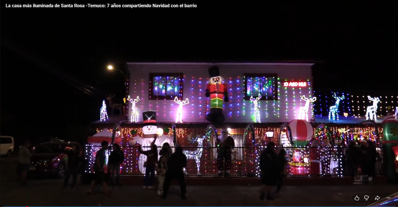 18-12-2025 / 18:50:39 La casa más iluminada de Santa Rosa -Temuco: 7 años compartiendo Navidad con el barrio Emmanuel Mercado Hace 7 años, una familia de la Población Santa Rosa abre las puertas de su hogar para regalar un momento de alegría a la comunidad. Con luces navideña... Comunidad