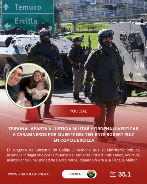 El Tribunal de Garantía de Collipulli determinó que la investigación por la muerte del teniente de Carabineros Robert Ruiz Yáñez (35) deberá ser realizada por la justicia civil, dejando sin efecto la competencia de la Fiscalía Militar que llevaba el caso hasta ahora.